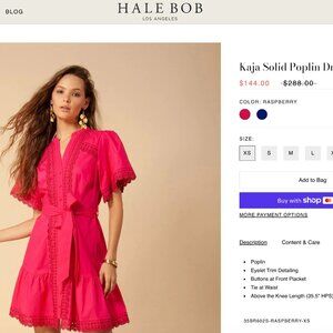 Hale Bob Solid Cotton Poplin Mini Fuchsia Dress XL (Kaja Solid Poplin Dress)