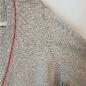 ROOTS | Wool Blend Beige Cardigan Sweater with Coral Accent Stitch