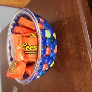 Unique bowl created with colorful pieces. If you have OCD the one bead that isn't full size may bother you. It's not noticeable over all