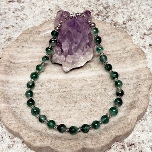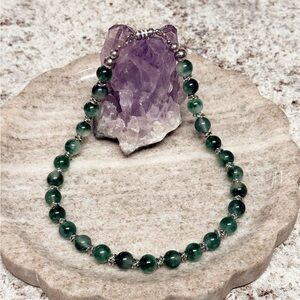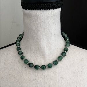 Green Jade Stone Collar Necklace With Silver Accents