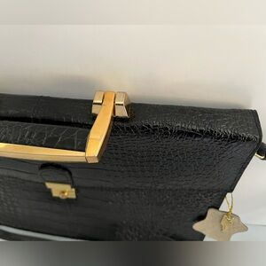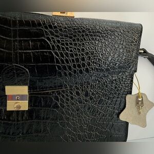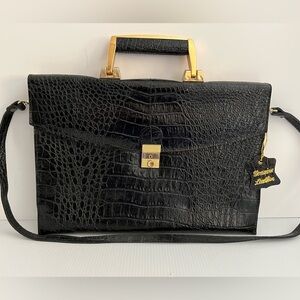Vintage Genuine Reptile Embossed Patent Leather Small Briefcase/Shoulder Bag