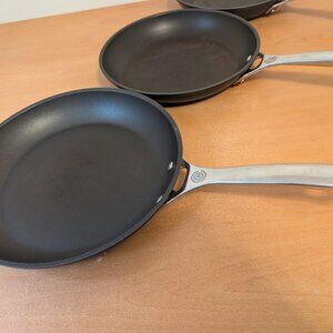 Le Creuset, Toughened Nonstick Pro, nonstick fry pan set, skillet set, hard anodized, induction cookware, chef pan, sauté pan, egg pan, pancake pan, black cookware, stainless handle, premium cookware, kitchen essentials