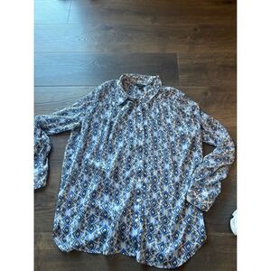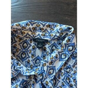 Ann Taylor Factory Blue Yellow Medallion Print Smocked Button Down Blouse Medium