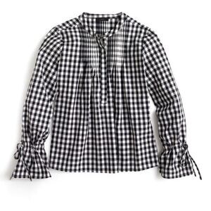 J. Crew Tie Sleeve Pintuck Gingham Top (Black and White). Size petit small. Love this boho peasant style top. Really good used condition no holes no stains. Smoke free home. 17.5 inch bust and 21 inch length. Bin 13