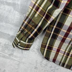 Fred Perry Plaid Button-Up Shirt Sz S Olive Burgundy Mod Style Long Sleeve New