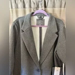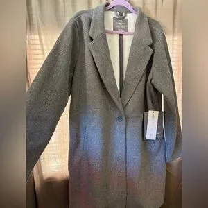 Elegant gray long women's coat in faux wool texture. Stay warm and stylish with this versatile piece.