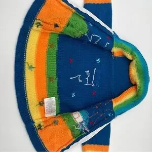 Kids Baby Infant Sweater Warm Cozy Handmade Peru Peruvian Animals Farm Colorful Bold Knitted Knit Boys Girls Gender Neutral Unisex Vibrant