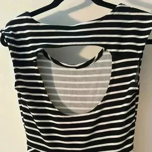 Flowy, pinstriped dress. Cinched at the waist. Cut of in back. Perfect condition.