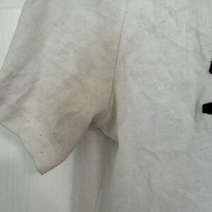 Stylish white tee with bold black 'Abercrombie New York' print. Ideal for everyday wear. Definitely has been worn! Does have stains and pit stains.