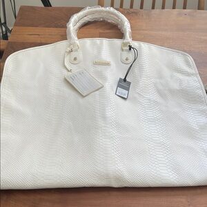 Discover elegance with this chic white garment bag. Perfect for any occasion, it combines style and functionality seamlessly.