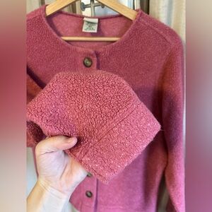 Beautiful and cozy vintage LL Bean fleece cardigan. Dark rose color with LL Bean embossed buttons. Well loved but still has plenty of life left. Size medium.