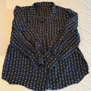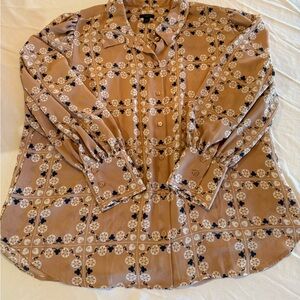 Three (3) - Ann Taylor Factory Floral and Patterned Blouses - Rust, Navy, Beige