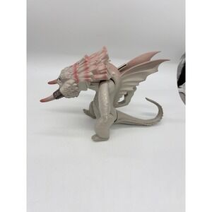 Spin Master How to Train Your Dragon 2 Screaming Death action figure brings the formidable dragon to life with a detailed, textured sculpt and a striking white and pink color scheme. This large-scale toy features movable wings and limbs, along with a mechanical jaw that opens to reveal a wide, toothy maw. The design includes spiked armor-like plates along its back and distinctive tusks with metallic-look bands. Perfect for fans of the DreamWorks series, this interactive figure is built for rugged play and display.