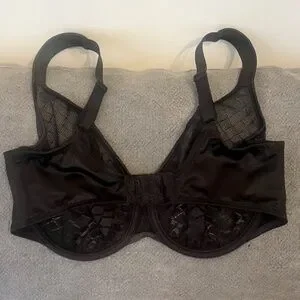 Satin trim surrounds the cups and front of shoulder straps for a glamorous touch