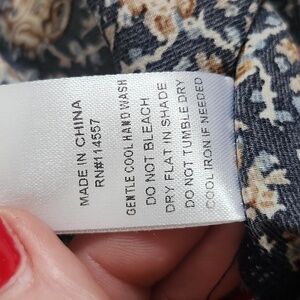 THML Cap Sleeve V-neck W/ Tie & Tassels, Navy Blue Pink Cream Floral, M