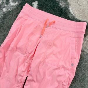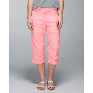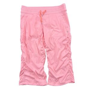 Here’s a super cute pair of Lululemon Studio Crop Pants in a size 10. Love the neon highlighter pink color. Perfect for working out in or dancing in or for everyday wear. Nice quality and comfortable too. Great condition, there is one mark in the inner band as shown and one small mark on the outside waist band as shown, otherwise great shape! :)