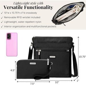 Baggallini Go Bagg Black Crossbody with RFID Wristlet NWT