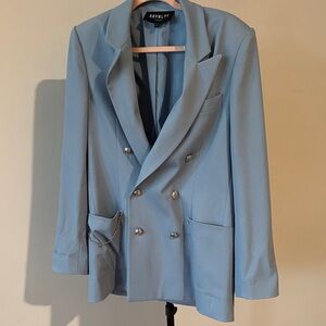Make a statement in this stunning Royalty by Maluma blazer in the most gorgeous soft blue shade. This piece gives elevated, fashion-forward vibes with its structured silhouette and eye-catching silver button details.