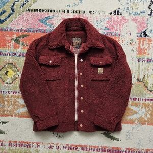 DIXXON Women's Petaluma Sherpa Jacket Oversized Small Button Down Red