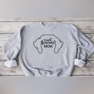 Saint Bernard Mom Crewneck on gray. Handmade to order with a Cricut machine and HTV. Crewneck is Gildan style 1800. Available in sizes S-2X. If you’d like the Crewneck or font to be in a different color let me know!