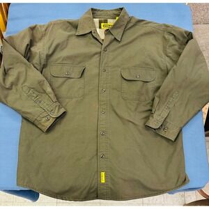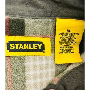 Stanley Mens XL Olive Green Cotton Sherpa Canvas Plaid Fleece Lined Work Jacket