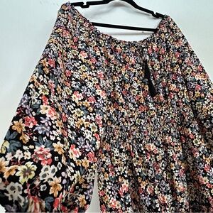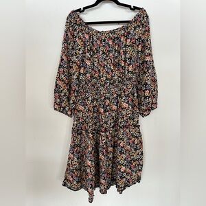 Justify Floral Puff Sleeve Smocked Mini Dress Black Size M