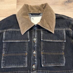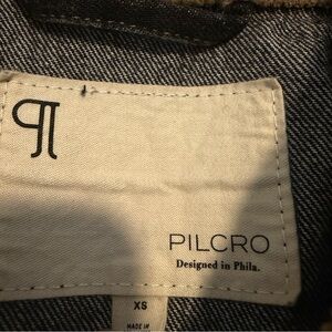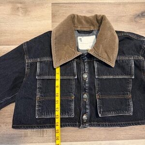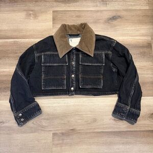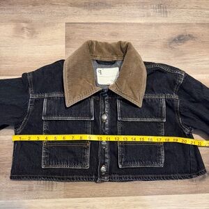 Pilcro Cropped Denim Barn Jacket Corduroy Collar Washed Black Womens XS