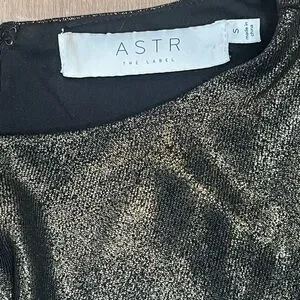 Dazzle in this Astr dress. Features shimmering black and gold fabric. Long sleeves and ruched design add elegance. holiday Parties, Date night, Evening, Going Out, Weddings, Showers, Events, dinners etc. Flattering Body Contour fit