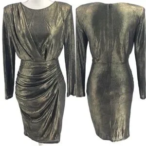 ASTR Gunmetal Gold Foil Ruched Mini Dress Women’s Small Like New