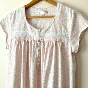 Eileen West Pink Ditsy Floral Lace Cottagecore Pima Cotton Nightgown Size Medium