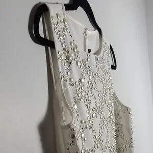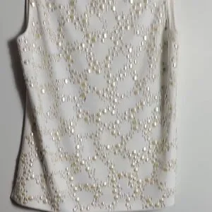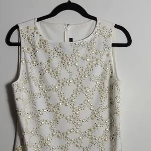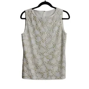 ST.JOHN Evening Ivory With Silver and Cream Elegant Sleeveless Top Size 8