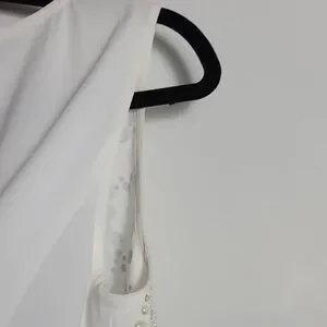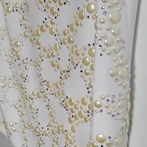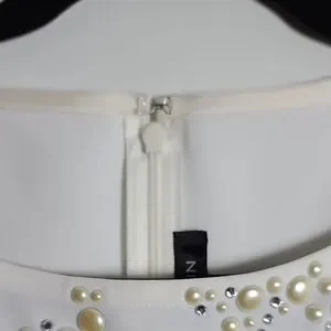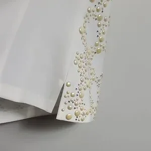 This elegant sleeveless dress features a stunning white base adorned with intricate gold detailing. Perfect for any special occasion, it combines sophistication with a touch of glamour.