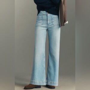 Maeve by Anthropologie full length Colette jeans in Light Blue wash. High rise, wide leg, really flattering.