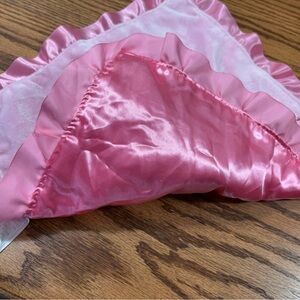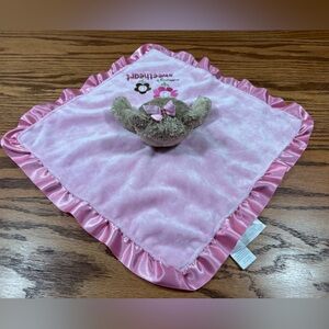 Soft pink baby blanket with an attached teddy bear that rattles. Features embroidered flowers and 'Mommy's Sweetheart' text. Satin backing. From 2010. Please see all pictures.