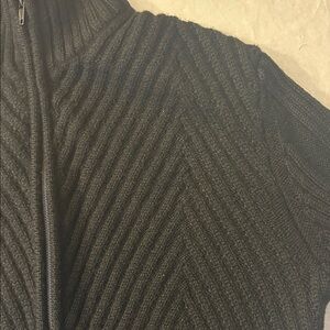 Stylish dark zip-up sweater with subtle texture. Perfect for any occasion.