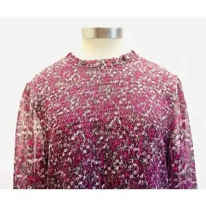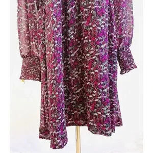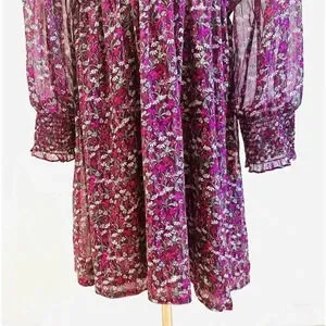 NWT DRAPER JAMES Women Long Sleeve Partially Lined Shirred Red Floral Dress XXL