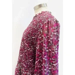 DRAPER JAMES Women Long Sleeve Partially Lined Shirred Red Floral Dress