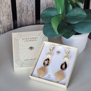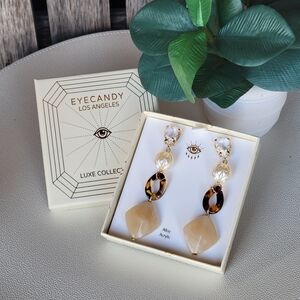 Eye Candy Luxe Metallic, Crystal, Acrylic and tortoise acetate dangle gold tone earrings