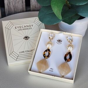 Eye Candy Luxe tortoise acetate dangle gold tone earrings