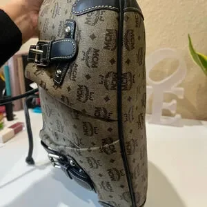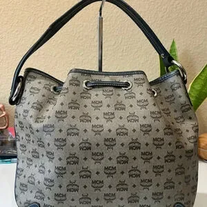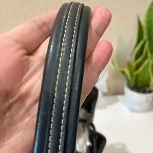 Authentic pre-loved. PVC monogram with blue leather and silver hardwares. Leather rubs on corners and edges. Leather rubs on the drawstrings. Handle has a bent part due to storage. Small ink marks on the inside.