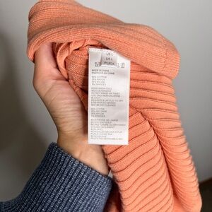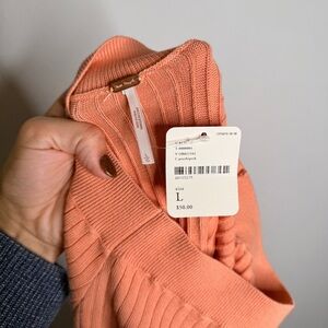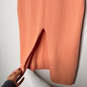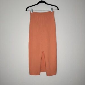 Free People Ribbed Midi Skirt Peach Cotton Blend Front Slit Casual Size L NWT