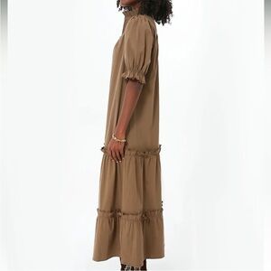 Modeled off of one of our favorite blouses, the Selena Maxi Dress is sure to be your new number from brunch, to girls night, to busy weekends, and everything else in between. Full of romantic details like a ruffle stand collar, quarter length front placket with covered buttons, and flutter detailing on the cuffs and skirt, this puff sleeve piece is fun and feminine. The styling options are endless - boots, tlats, heels, sneakers...must we continue? This day to night stunner does it all!