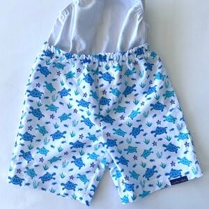 Charming - LIKE NEW - Jojo Maman BéBé Turtle Print Swim Shorts w Built-in Swim Diaper made in England/United Kingdom Sz 12-24M.