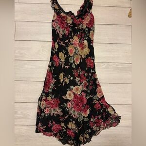 Chic midi dress with vibrant floral pattern. Ideal for stylish outings.