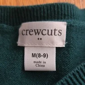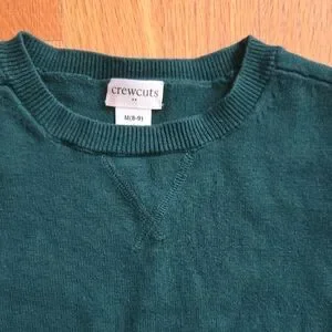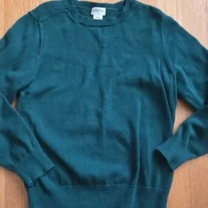 Stylish crewneck sweater. Soft and cozy material. Perfect for any occasion. Size M (8-9). Ribbed cuffs and ribbed at waist. Great condition, slightly used, wash and worn. Perfect to pair with a collared shirt under or on its own. Son wore it with khaki pants or a pair of black pants. Refer to pictures for more details. Color is more of a dark green color.