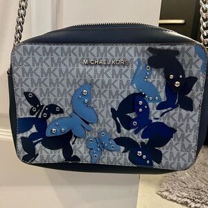 Michael Kors Gray and Blue Butterfly Crossbody Bag