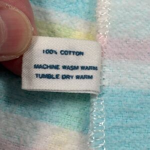 Cozy blanket with soft pastel stripes. Features pink, blue, and yellow hues. Nice thick flannel like material. Great vintage condition. Please see all pictures.
