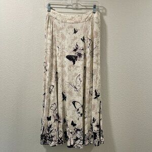 SOFT SURROUNDINGS "Spring Fever" Maxi Skirt Butterfly/Floral Ivory, tan & Brown PL