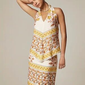 J. CREW Open-back halter top in sunset rose block print $118 XS NWT