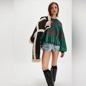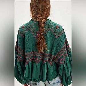 NWT Free People Holly Long Sleeve Knit Top ~Green Combo~